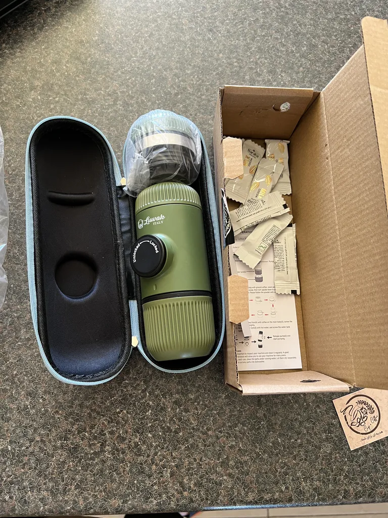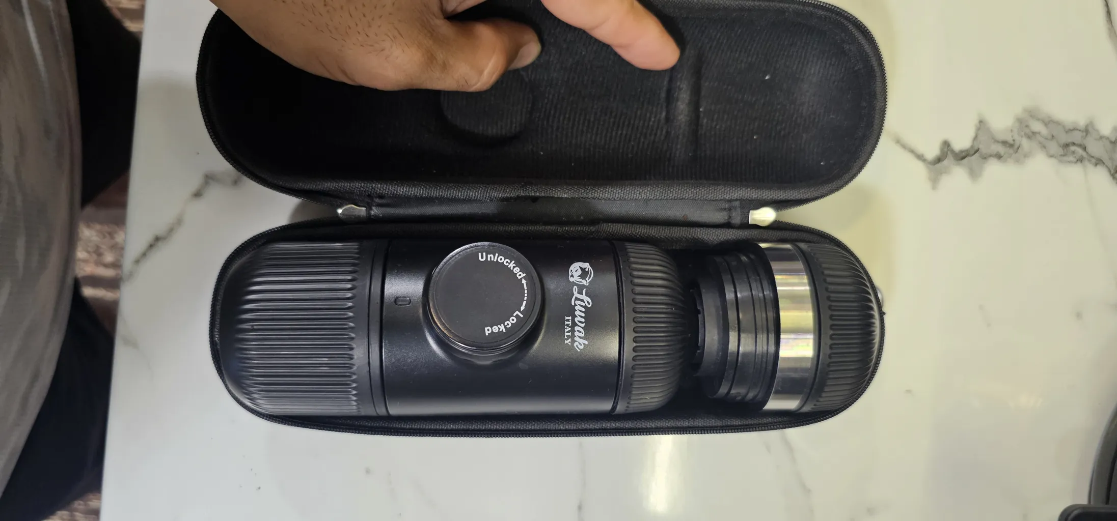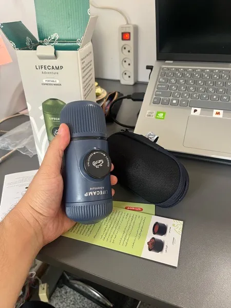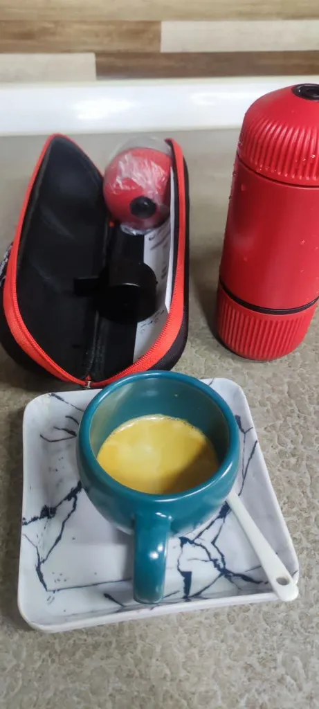 مجید صادقی دستجردی : مینی پرسو شارژی ؛ امروز به دستم رسید فورا چند شات اسپرسو تست کردم با درجه آسیابهای مختلف،تو یکی از حالتها اسپرسو نسبتا خوب نزدیک به دستگاه خانگی داشت مزایا معایب را نوشتم بالاتر باز هم تست میکنم خبر میدم ،کیفیت عملکرد در بلند مدت باید دید چطوره،امیدوارم خوب بمونه. کاش یه کاور یا جلدی چیزی داشت برای حملش