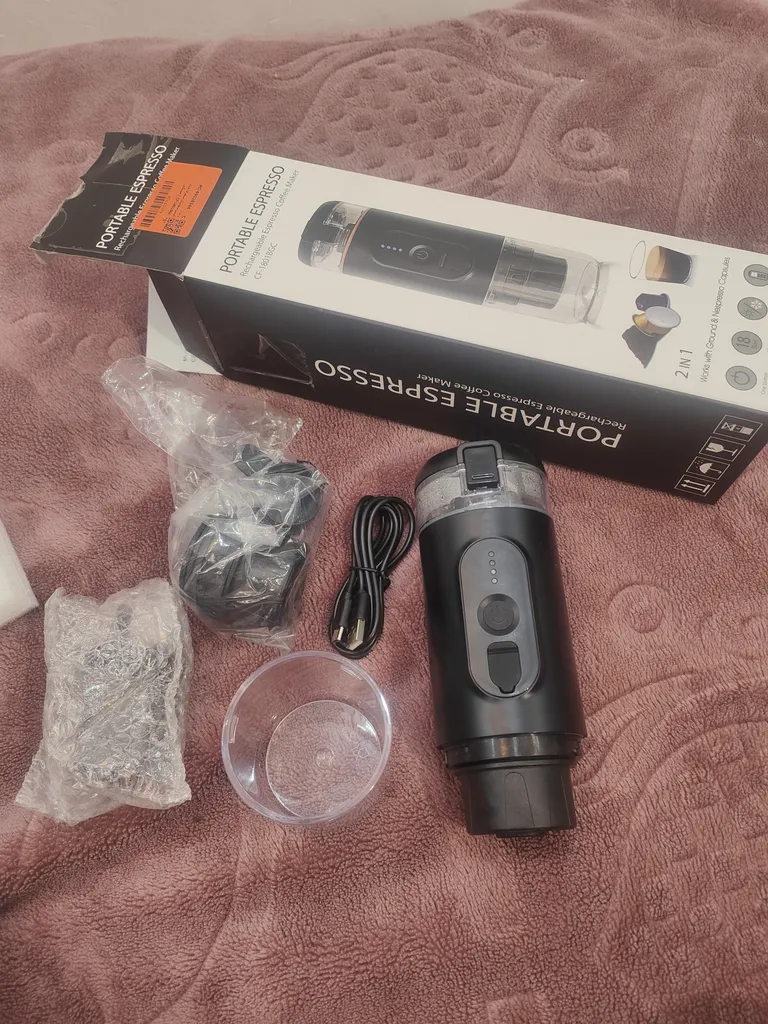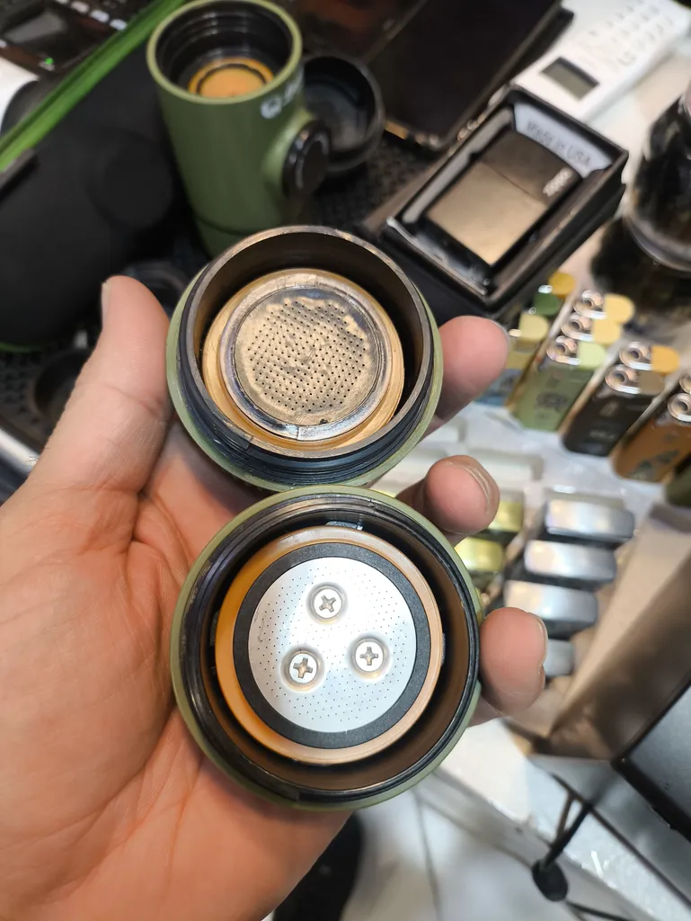 معین براتی جوزدانی : اسپرسو ساز شارژی ؛ دست دوم بود. قبلا باهاش قهوه درست کرده بودن. هم خیس بود هم ذرات ریز قهوه داخلش بود.