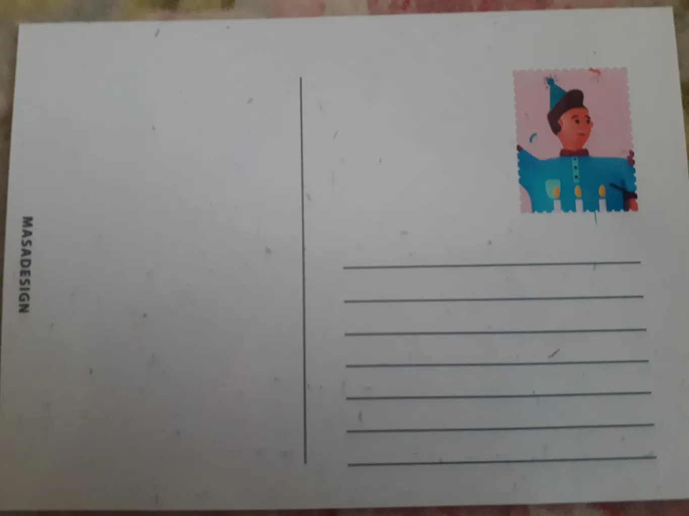 خوب ؛ کارت پستال های ماسا دیزاین کلا عالی هستن، اما متاسفانه ایندفعه جوری که فرستادن، کارت بین چسب پاکت نامه قرار داشت و باعث شد یکم بد بشه. توو عکس نقاطی ک کمرنگ پایین، با چسب پاکت نامه کنده شده