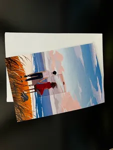 چی بگم والا ؛ تصویرش و فضاش قشنگه ولی خیلی کم رنگه و اینکه پاکتشم یه پاکت سفید ساده ست و اینکه جنسش مثل جنس عکسه و چسبناکه اما قیمتش به نسبت خوب بود