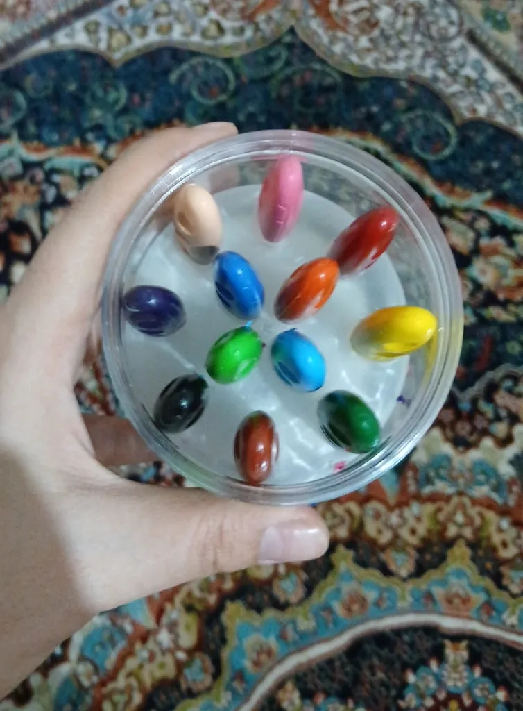 خریدار بدون نام : خوب بود به دستای پسرم رنگ نداد ولی به فرش و لباس و دیوار رنگ میده