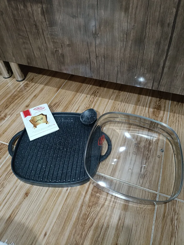 - ⬤ تابه گریل دو طرفه : این تابهها برای گریل کردن غذاها از دو طرف مناسب هستند. خریداران از طراحی مناسب و قابلیت پخت یکنواخت راضی بودند. مزیت آنها این است که میتوانند برای پخت گوشت و سبزیجات مناسب باشند. معایب شامل وزن سنگین و نیاز به فضای زیاد هستند. نکته مهم: خریداران به طراحی دو طرفه و قابلیت استفاده در حرارت بالا اشاره کردند.
