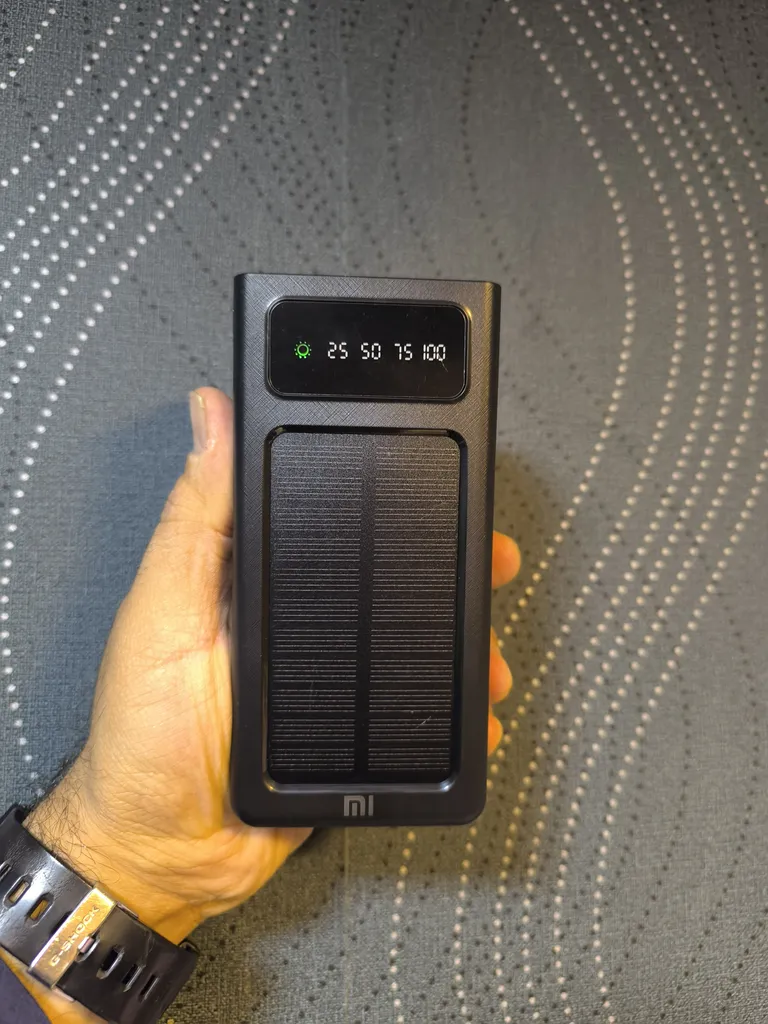 - ⬤ پاوربانکهای خورشیدی : این نوع پاوربانکها به دلیل قابلیت شارژ با نور خورشید، برای سفرهای خارج از شهر و کمپینگ بسیار مناسب هستند. خریداران از این ویژگی به عنوان یک مزیت بزرگ یاد میکنند، به ویژه در شرایطی که دسترسی به برق وجود ندارد. اما برخی کاربران از عملکرد ضعیف پنل خورشیدی و عدم توانایی در شارژ سریع شکایت کردهاند. همچنین، ظرفیت واقعی این مدلها نیز گاهی کمتر از آنچه که ادعا میشود، بوده است و این موضوع میتواند موجب نارضایتی شود.