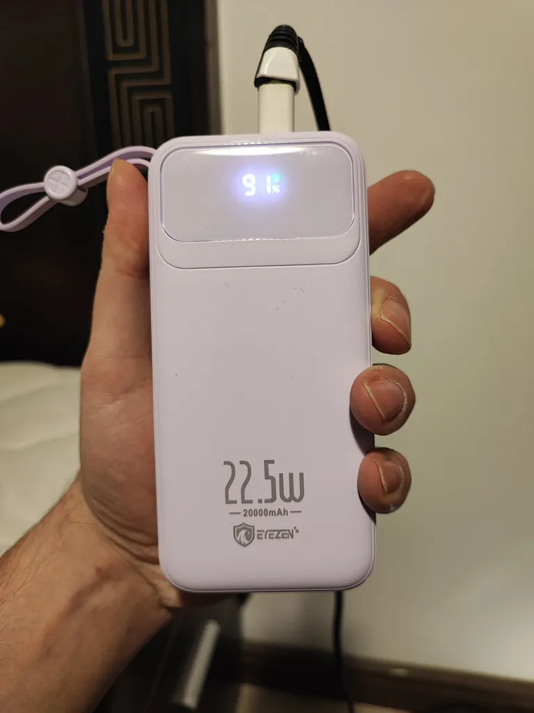 - ⬤ چراغ قوه : وجود چراغ قوه در پاوربانک میتواند یک ویژگی اضافی مفید باشد. برخی خریداران از این ویژگی راضی بوده و آن را کاربردی میدانند، به ویژه در شرایط اضطراری. این ویژگی میتواند به عنوان یک مزیت اضافی در نظر گرفته شود.