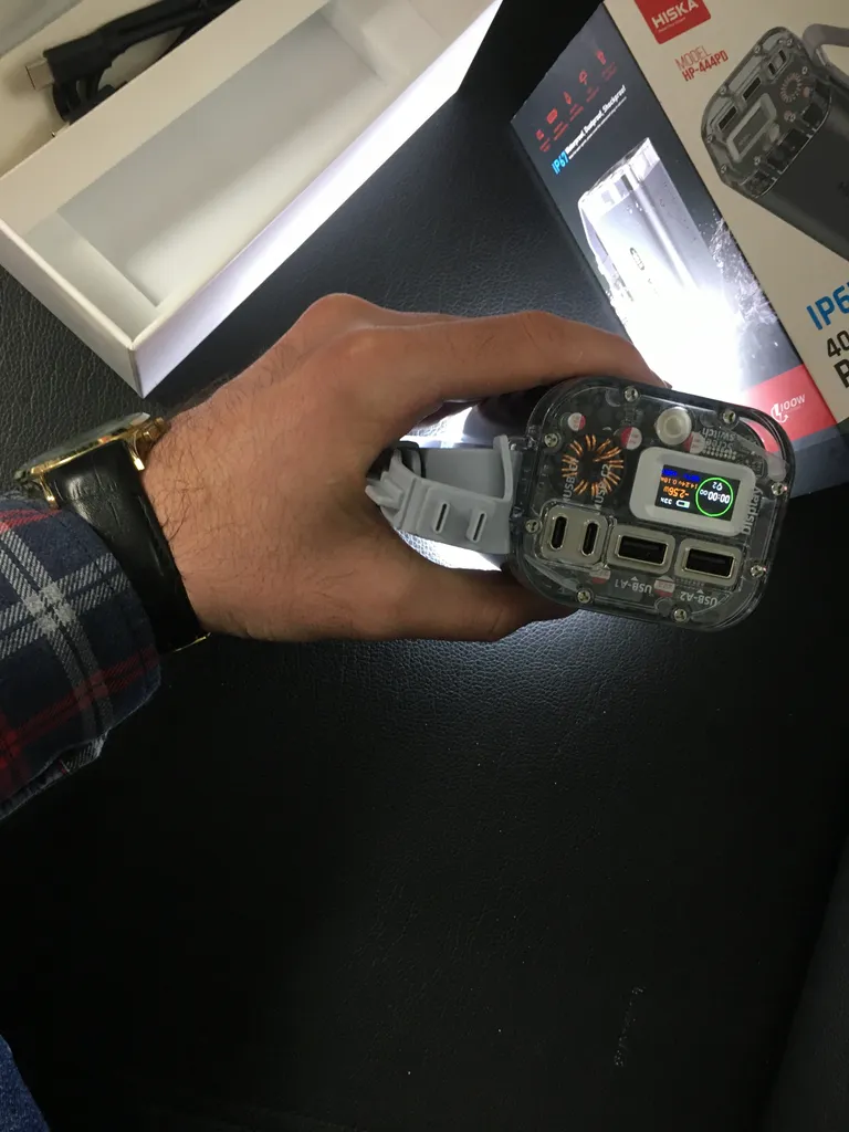 - ⬤ چراغ قوه : وجود چراغ قوه در پاوربانک میتواند یک ویژگی اضافی مفید باشد. برخی خریداران از این ویژگی راضی بوده و آن را کاربردی میدانند، به ویژه در شرایط اضطراری. این ویژگی میتواند به عنوان یک مزیت اضافی در نظر گرفته شود.