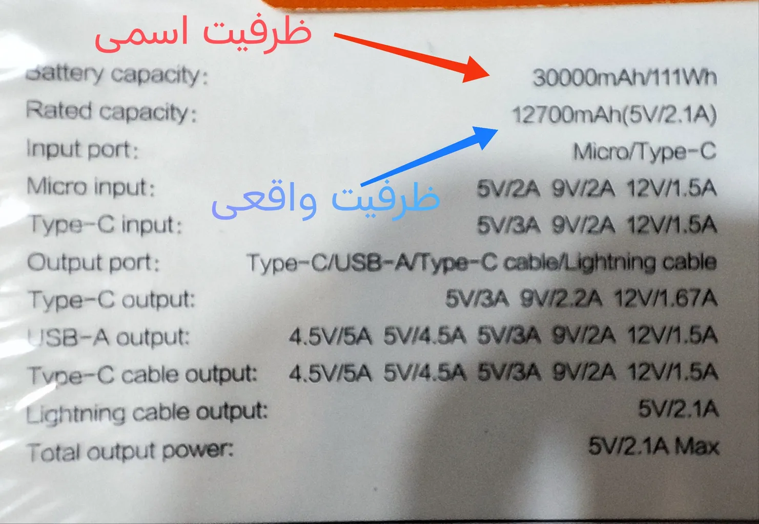 - ⬤ ظرفیت اسمی و واقعی : خریداران به دقت به ظرفیت اسمی پاوربانک توجه میکنند و معمولاً از ظرفیتهای بالای 10000 میلیآمپر استقبال میکنند. اما نکتهای که بسیاری از آنها به آن اشاره کردهاند، تفاوت بین ظرفیت اسمی و واقعی است. برخی از کاربران متوجه شدهاند که ظرفیت واقعی کمتر از آنچه که در مشخصات ذکر شده، است و این موضوع میتواند موجب نارضایتی و عدم اعتماد به برند شود.