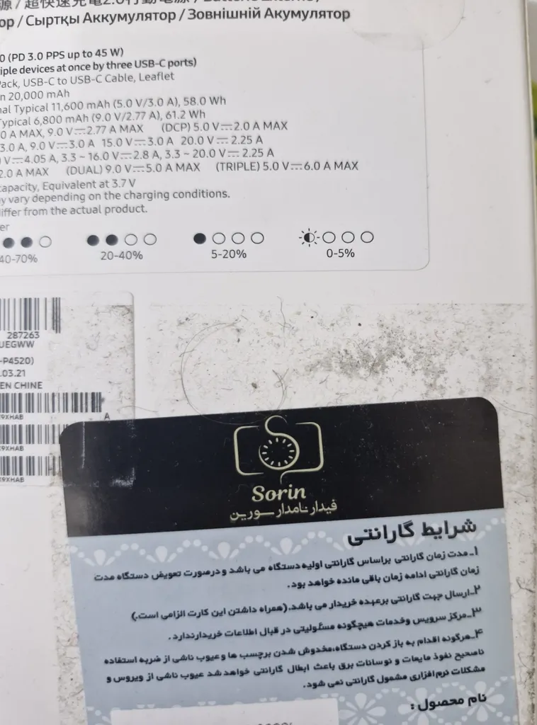 - ⬤ چراغ قوه : وجود چراغ قوه در پاوربانک میتواند یک ویژگی اضافی مفید باشد. برخی خریداران از این ویژگی راضی بوده و آن را کاربردی میدانند، به ویژه در شرایط اضطراری. این ویژگی میتواند به عنوان یک مزیت اضافی در نظر گرفته شود.