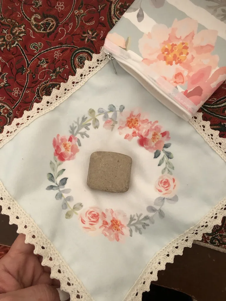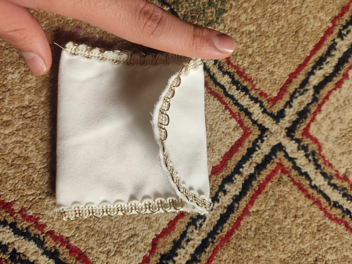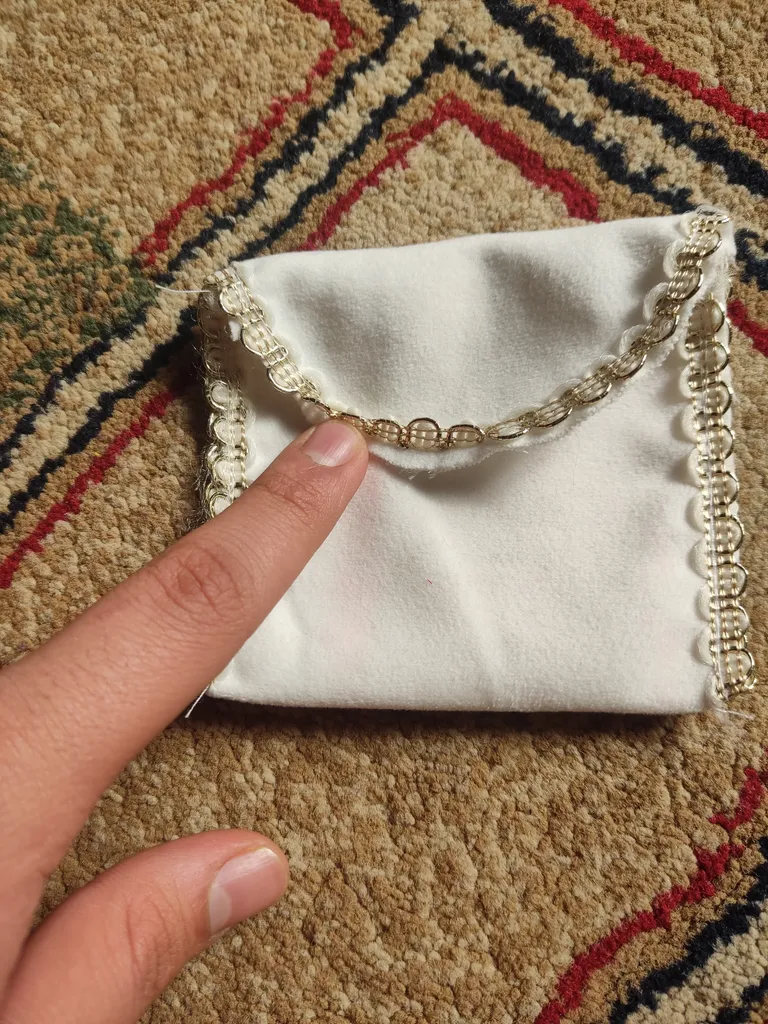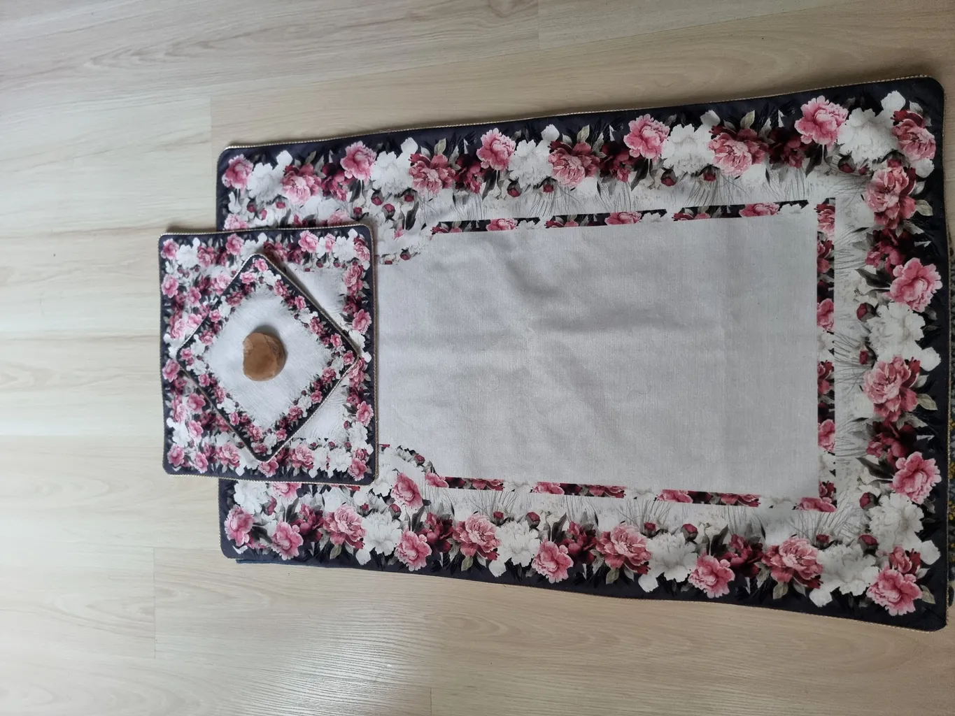 خیلی کوچولو و با نمکه جنس چرمش که مصنوعیه خوب و نرمه و مُهرش خیلی با مزست. برای سفر و بیرون رفتن خیلی خوبه به نظرم ولی برای خونه من ترجیح میدم یک جا نماز یا سجاده ی بزرگتری باشه