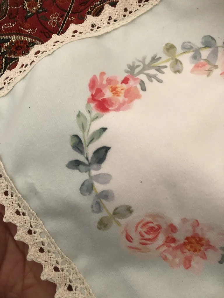 فقط با عکس محصول یکی نیست. قسمت گلدوزی ها برش نخورده.