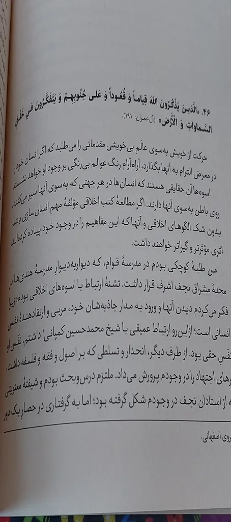 علی بختیاری : کهکشان راه نیستی ؛ محتوای کتاب خیلی خوبه و کاملا مستند و صفحات آخر کتاب کاملا مستندات هر فصل رو بیان کرده که مآخذ فلان بحث برای چه منبعی هست و سعی با روایتی داستان در چارچوبی تاریخی و واقعی زندگینامه آیت الله قاضی رو شرح بده