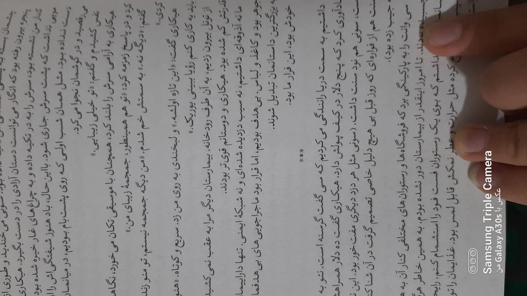 ی چند جاییش کیفیت چاپ نداشت یا بعضی صفحاتش خیلی کم رنگ بود نوشته هاش ولی در آخر خوب بود جملات زیبایی هم داشت