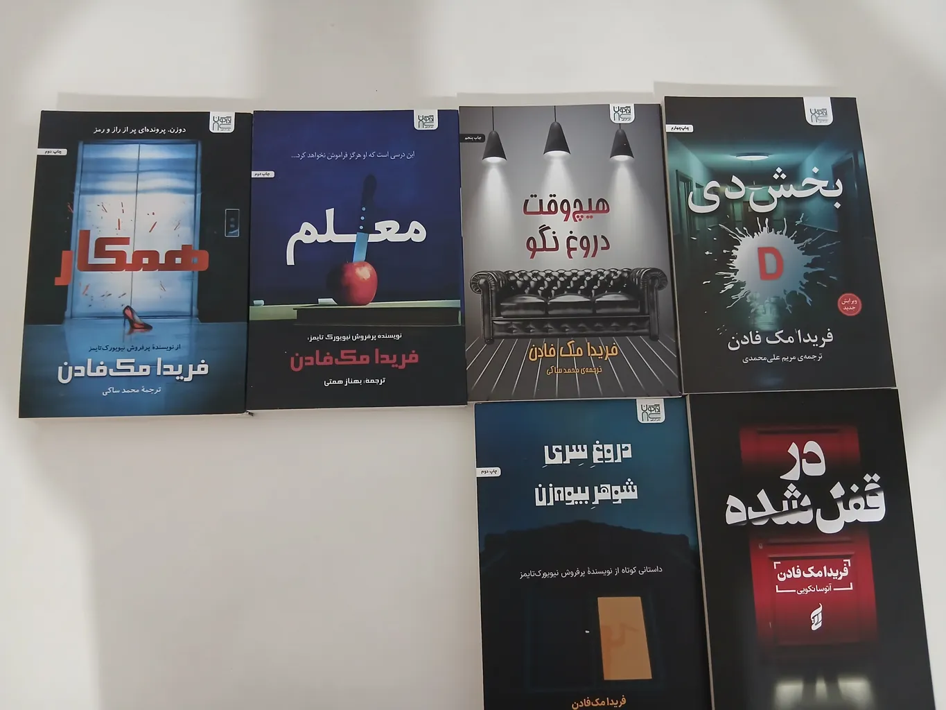 نظر و تجربه خرید کتاب بخش دی، همکار، معلم، هیچوقت دروغ نگو و دروغ سری شوهر بیوهزن اثر فریدا مکفادن ترجمۀ مریم علیمحمدی و محمد ساکی نشر آذرگون 5 جلدیدر تاریخ ۰۴ مرداد ۱۴۰۴