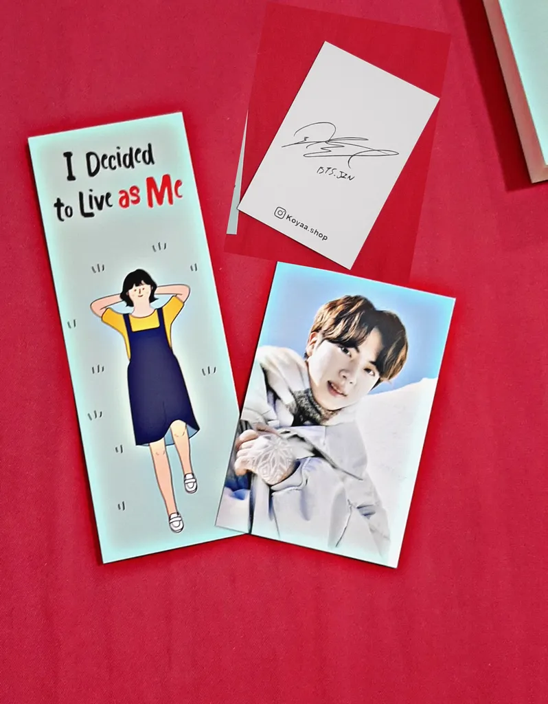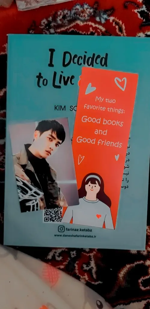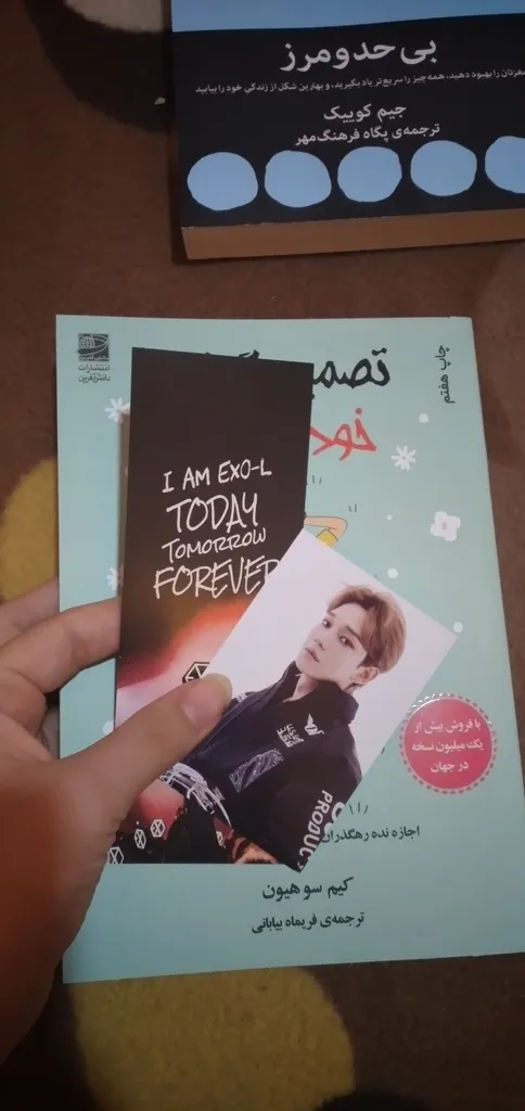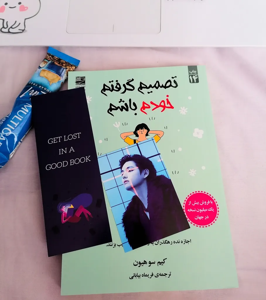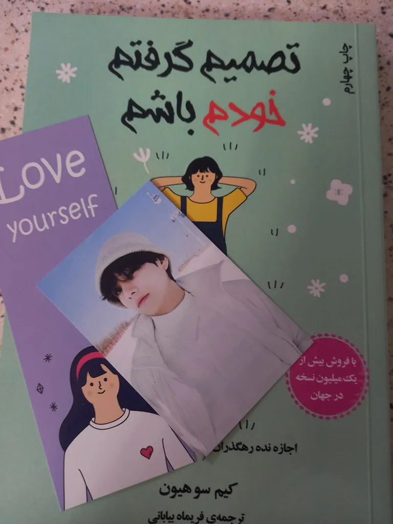 کتاب تصمیم گرفتم خودم باشم^^ ؛ این کتاب از نویسنده کیم سو هیون است که با یک بوکمارک و فتوکارت جیهوپ از گروه بی تی اس به عنوان اشانتیون از فروشگاه انتشارات دانش آفرین خریدم.^^