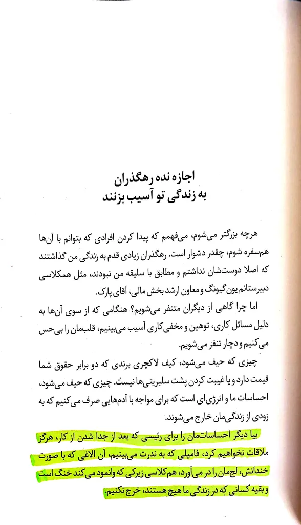 ۲۰۶ صفحه داره فصل بندی نیست بلکه بخش بندی هست و ۶ بخش داره و هر بخش چند قسمت مختلف داره. بخش اول قسمت اولش اینه (به کسانی که با تو مهربان نیستند مهربانی نکن)