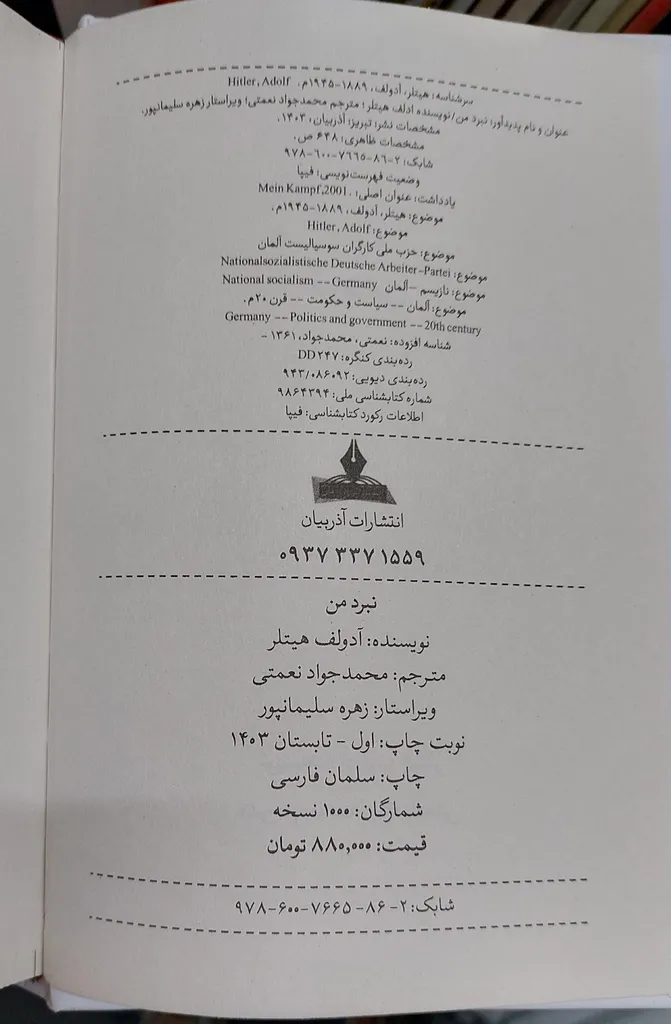 نظر و تجربه خرید کتاب نبرد من اثر آدولف هیتلر ترجمه محمد جواد نعمتی انتشارات آذربیاندر تاریخ ۰۶ فروردین ۱۴۰۴