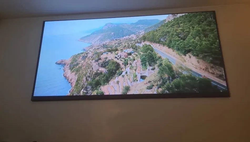 - ⬤ کیفیت رنگ : رنگهای زنده و با کیفیت در پرده نمایش، از نکات مثبت مورد توجه خریداران است. این ویژگی به وضوح تصویر و تجربه تماشا کمک میکند و به جذابیت محتوای نمایش داده شده میافزاید.