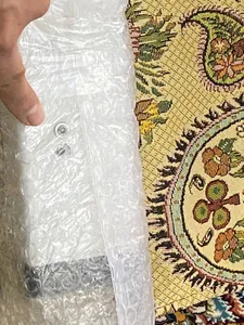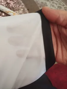 متاسفانه بار دومی که باز کردم یک سمتش چون نو بود گیر کرد و یه سمت دیگش پاره شد عکسش رو گزاشتم یکمم لکه روی اولش بود که از دور مشخص نیست.