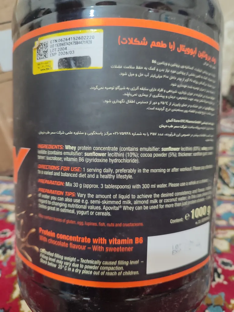 نظر و تجربه خرید پودر پروتئین وی با طعم شکلات آپوویتال - 1000 گرمدر تاریخ ۰۷ مهر ۱۴۰۴