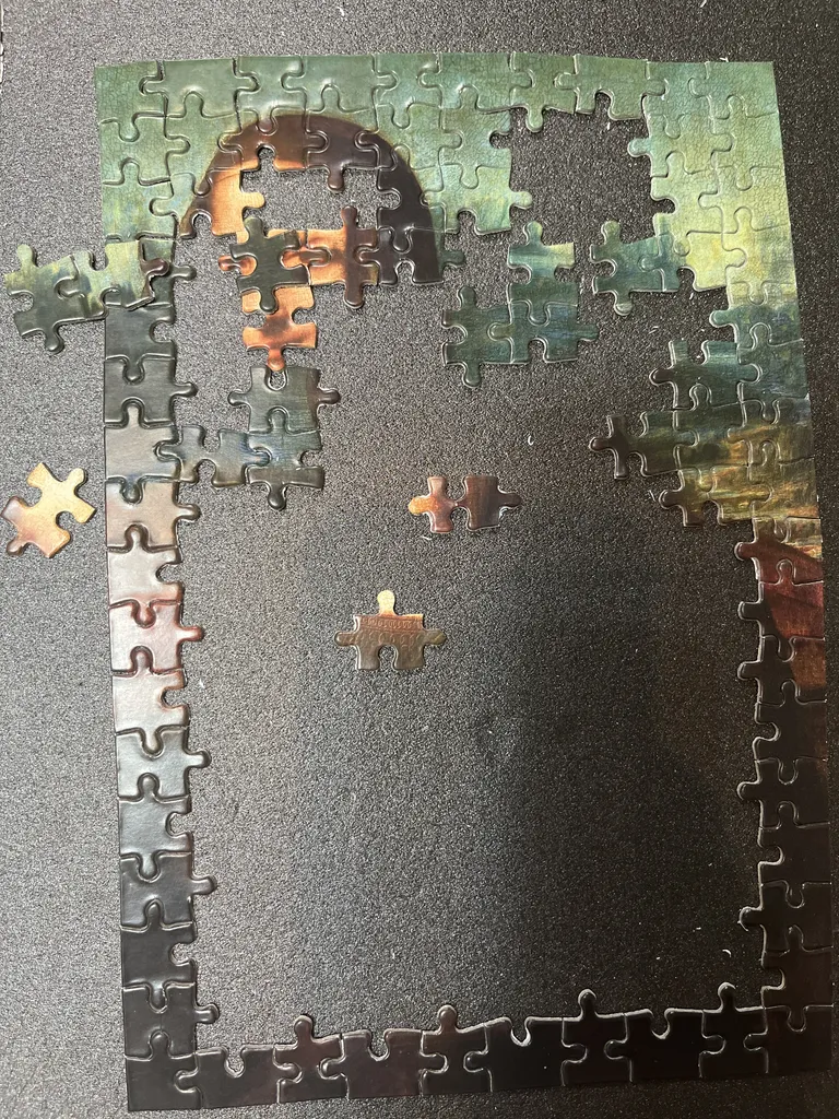 مونالیزا کاملاااا سمت چپ پازل قرار گرفته بود به جای اینکه مطابق عکس روی پازل مونالیزا وسط پازل باشد ، بخاطر همین کاملا تکه های پازل سمت چپ به هم ریخته و جور نمی شود