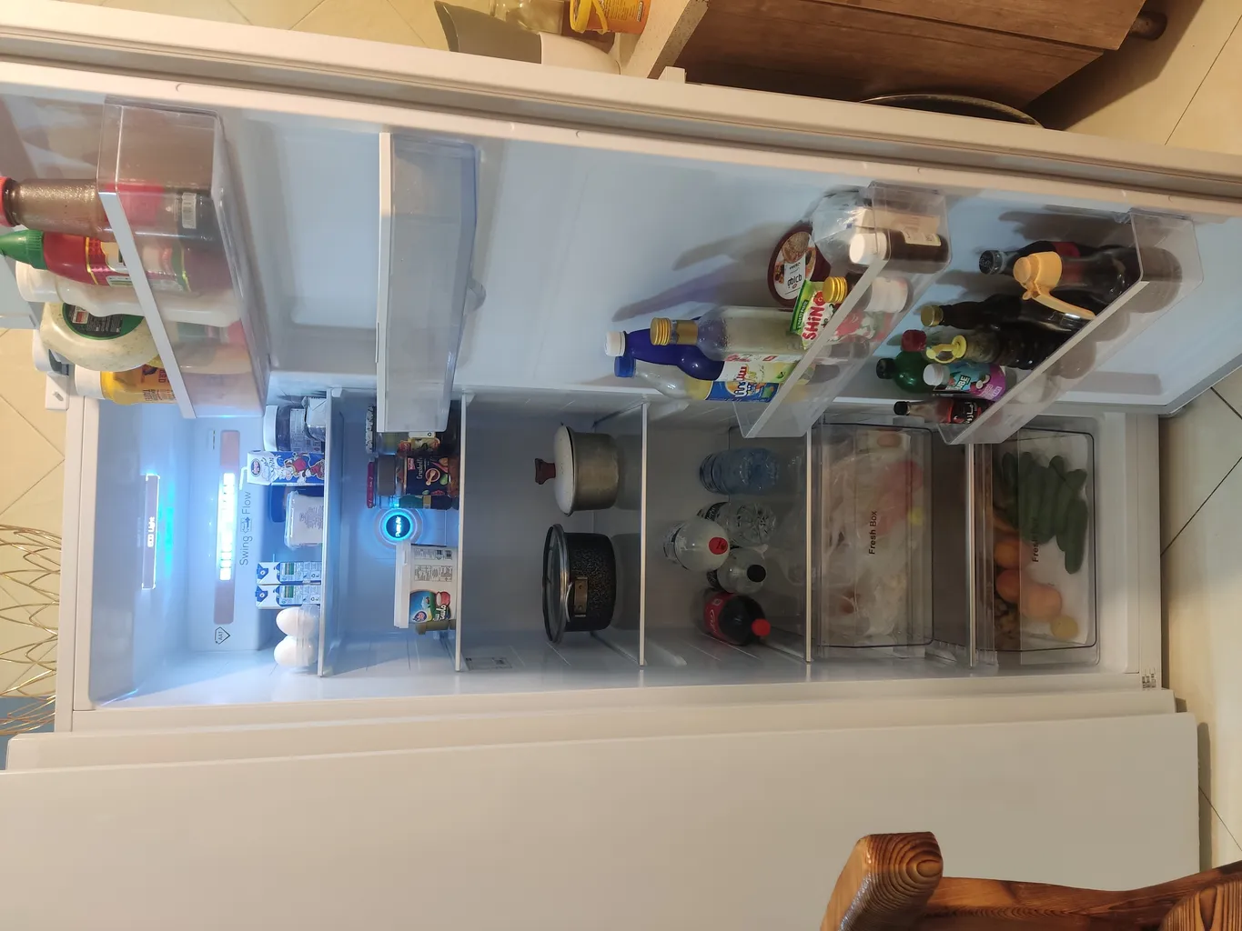 - ⬤ نورپردازی داخلی : نورپردازی داخلی یخچال و فریزر نیز از نکات مهم است. نورپردازی مناسب میتواند به راحتی در پیدا کردن مواد غذایی کمک کند.
