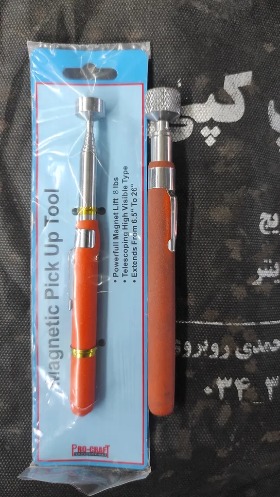 بهنام واثقی پناه : عملکرد ؛ از عملکرد آهنربای آنتنی بسیار راضی هستم. قدرت بسیار خوبی دارد. در تصاویر پیداست.پیچهای بزرگ را خوب نگهداشت. طول باز شده آن حدوداً 65 سانت است.قسمت سر یا خود آهنربا درشت و قطر آن تقریباً 18 میلیمتر است و برای فرستادن به منافذ تنگ مناسب نیست. البته اگر کوچکتر باشد قدرتش نیز کم می شد.من برای جمع آوری پیچ و مهره در حین تعمییرات استفاده می کنم.کاملاً راضی هستم.من الله توفیق
