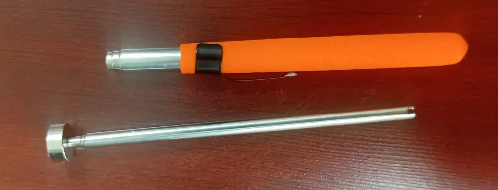 محمد شفیعی : ۶۶ سانتیمتر طول با یک آهنربای نسبتا قوی. برای من کار راه انداز بود. به عکس توجه داشته باشید. یک عدد متر فلزی ۳۲۰ گرمی افتاده بود تو گلوئی توالت و به هیچوجه خارج نمیشد. با این آهنربا کشیدمش بیرون