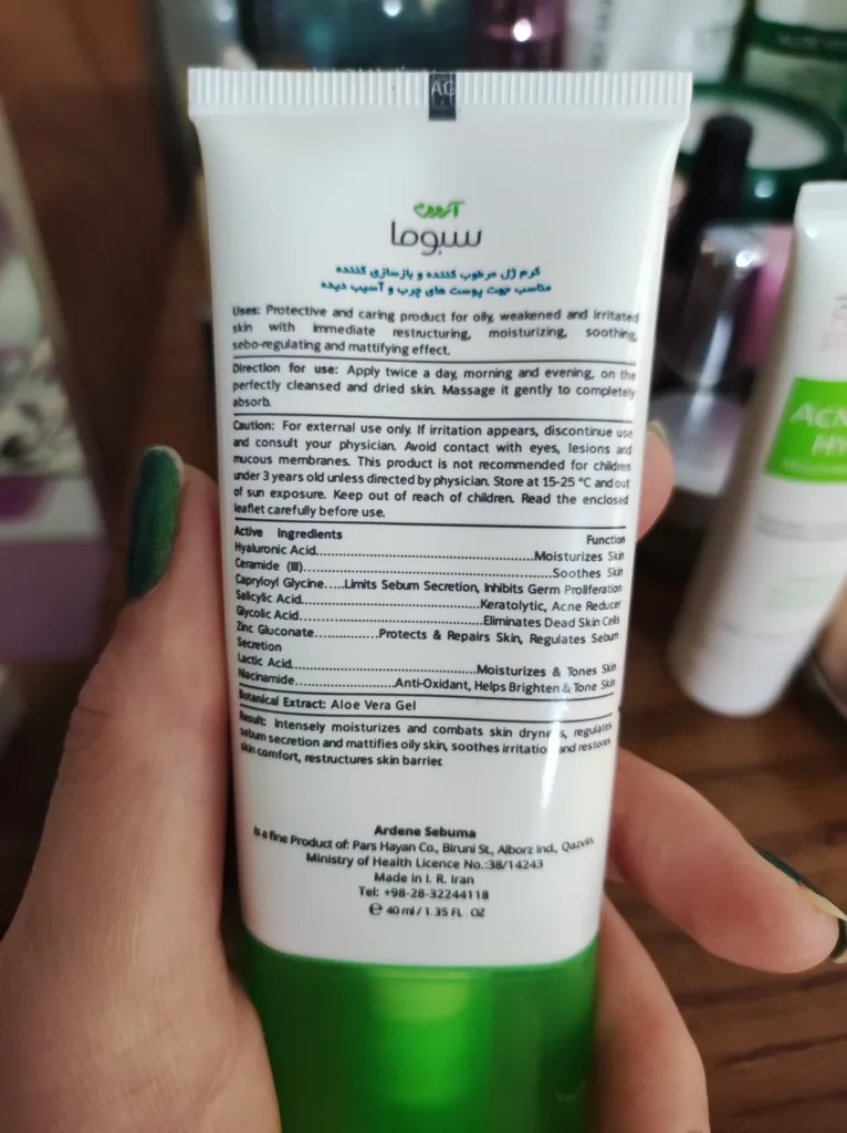 برای کسی گرفتم، البته که خودمم استفاده می کنم، به توصیهٔ اسکین تراپیست گرفتم ایشون گفتن توی برندهای ایرانی این آبرسان مورد اعتماد تره برای پوست چرب و مختلط و مستعد جوش. به نظر من خاصیت آبرسانی و مرطوب کنندگیش بیشتر از ترمیم کنندگی هست در صورتی که توی سایت نوشته شده کرم ترمیم کنندهٔ آردن سبوما، جذبش خوبه و روی پوست حس چربی و سنگینی نداره، تأثیر مرطوب کنندگیش هم خوبه و لازم نیس خیلی زیاد بزنین تا پوست مرطوب بشه، بسته بندی خوب بود، قیمت هم خیلی کمتر از فروشگاه های لوازم بهداشتیه من از بیرون ۳۵۵ تومن گرفتم اما این پک دوتایی دونه ای ۲۰۰ و خورده شد، بافتش هم کرمی هست نمیدونم چرا نوشته شده کرم ژل شاید به خاطر اینه که بافت کرمش خیلی سفت و غلیظ و سنگین نیس