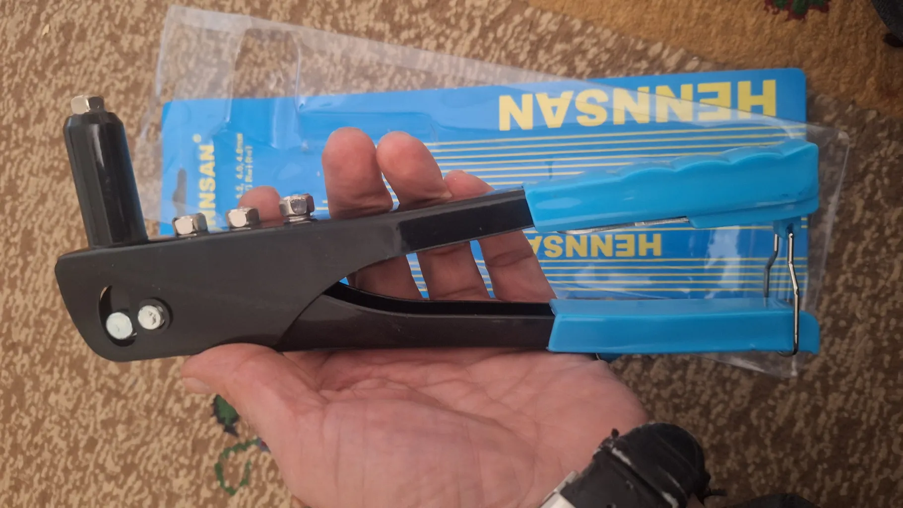 - ⬤ انبر پرچ دستی : این نوع انبر پرچ برای کارهای خانگی و سبک طراحی شده است و معمولاً از جنس آلومینیوم یا فولاد ساخته میشود. خریداران به دلیل قیمت مناسب و کارایی خوب این مدلها، از آنها راضی هستند. برخی از کاربران اشاره کردهاند که این انبرها برای کارهای روزمره و پرچ کردن پلاکهای ماشین مناسب هستند، اما در کارهای سنگینتر ممکن است به قدرت بیشتری نیاز داشته باشند. همچنین، برخی خریداران به کیفیت ساخت و دوام این مدلها اشاره کردهاند و از آنها به عنوان ابزاری کارآمد برای استفادههای خانگی یاد کردهاند.
