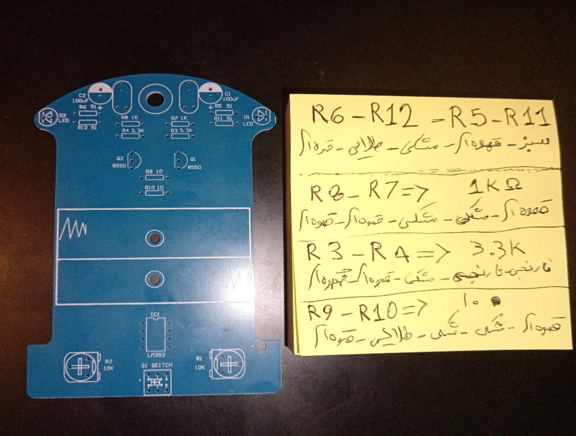جالب ؛ توجه کنید که فقط مقاومت مثبت و منفی نداره، برای یافتن میزان مقاومت هم به مولتی متر متصل کنید، دوتا مقاومت نوری هم داره اونا هم مثبت و منفی نداره، فقط دیود و خازن مثبت منفی داره، درآخر حواستون باشه اتصال با قلع مردگی و ناقص نباشه خوب لحیم کنید، مقاومت نوری هم اگه نور محیط زیاد بشه، میزان مقاومت هم کم میشه، همه رو میشه تست کرد، برا من که سالم بود