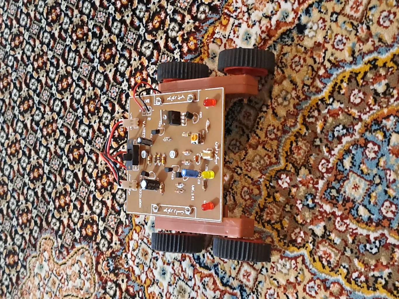 از مشهد کیت گرفتم قطعات سالم و کیفیت عالی بود، یک آموزش کوتاه بدم ، اول ازهمه مقاومت ها که توی عکس راهنمایی کردم ، دو عدد خازن هست در قسمت C1 و C2 نصب میشه که سمت سفید رنگش با سمت سفید (منفی) روی برد باید یکی باشه ، دو عدد LED قرمز داره مال روی برد هست با نماد 01 و 02 مشخص شده و دو عدد LED شیشه ای که برای زیر برد و کنار فتوسل ها قرار میگیره، فتوسل ها مثبت منفی ندارند ولی LED ها همگی دارای مثبت و منفی هستن که پایه کوتاه منفی و بلند مثبت هست روی برد نمادش هست و علامت شبیه مثلث ینی قطب مثبت یا آند و خط ینی منفی یا کاتد ، موتور ها مثبت منفی نداره ولی اگر بعد از اتمام کار دیدید داره برعکس رو به عقب میچرخه همون سمت موتورش رو سیم هاشوجابجا کنید ، موتور ها زیر برد به قسمت M1 و M2 لحیم کنید، باتری مثبتش که سیم قرمز هست روی مدار مشخض شده، دو تا پتانسیومتر برای تنظیم حساسیت سنسور ها تبعیه شده که باید باتوجه به نور محیط و خط تون تنظیمشون کنید و هر دوتا یک تنظیم داشته باشه ترجیحا،البته که تنظیم پیشفرضص خودش اوکیه، ترانزیستور ها نیز جاش مشخصه و قسمت نیم دایره با نماد روی مدار یکی باشه و لحیم کنید ، در کل مدار فوق العاده ساده ای هست که اگه حتی مبتدی باشید هم میتونید درستش کنید،