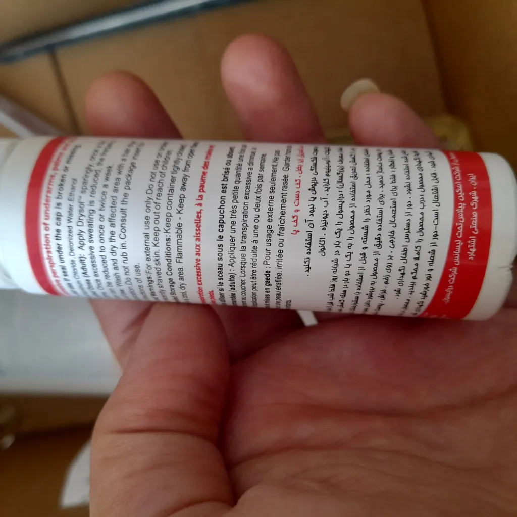 ضد تعریق ؛ راستش هنوز استفاده نکردم ازش و تازه واسم آوردن یکم کوچیکه ولی اگه تاثیر داشته باشه میارزه و یکم هم گرونه ولی خب بسته کامل و سالم به دستم رسید