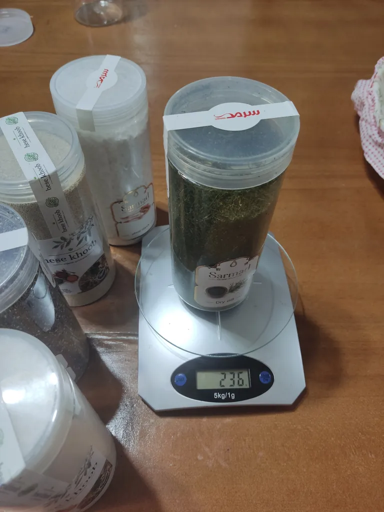 وزنش با ظرف ۲۳۶ گرمه که تقریبا همون ۲۰۰ گرم شوید خالص داره
