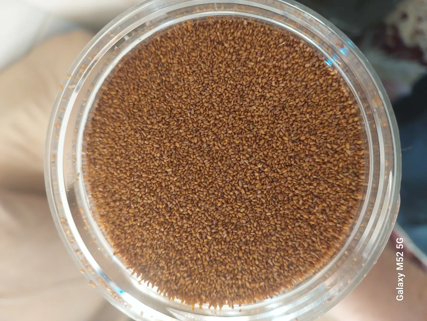 محصول تقریباپر ارسال شد و من از تخم کتان مصرف کردم به همین دلیل در عکس سر خالیه