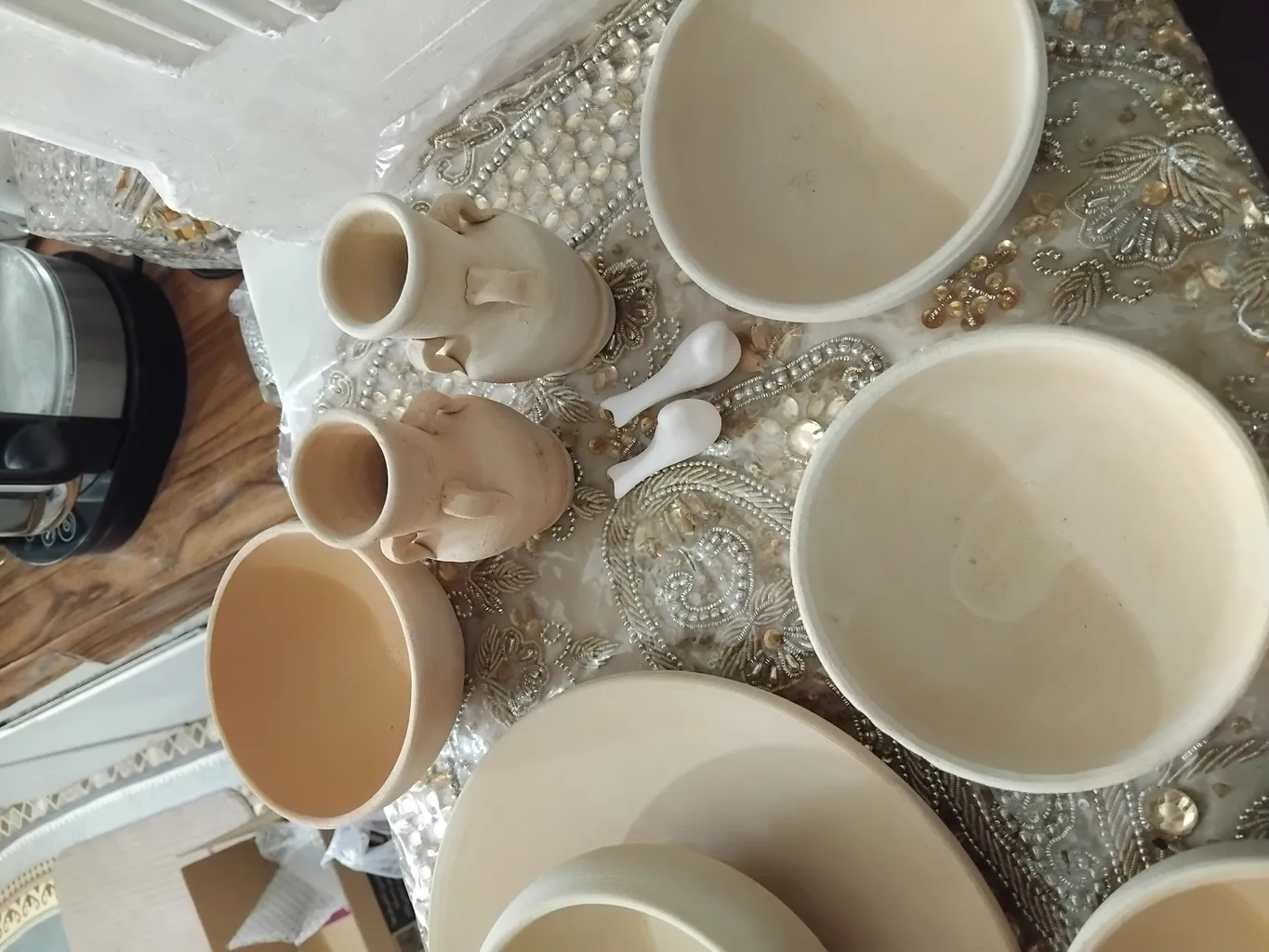 برخی جاها ناهمواری هست و یکی از ظروف لب پریدگی داشت اما بازم نسبت به قیمت به شدت خوبه میتونید نقاشی کنید یا اسپری رنگ بگیرید رنگ بزنید یا حتی همینطوری استفاده کنید