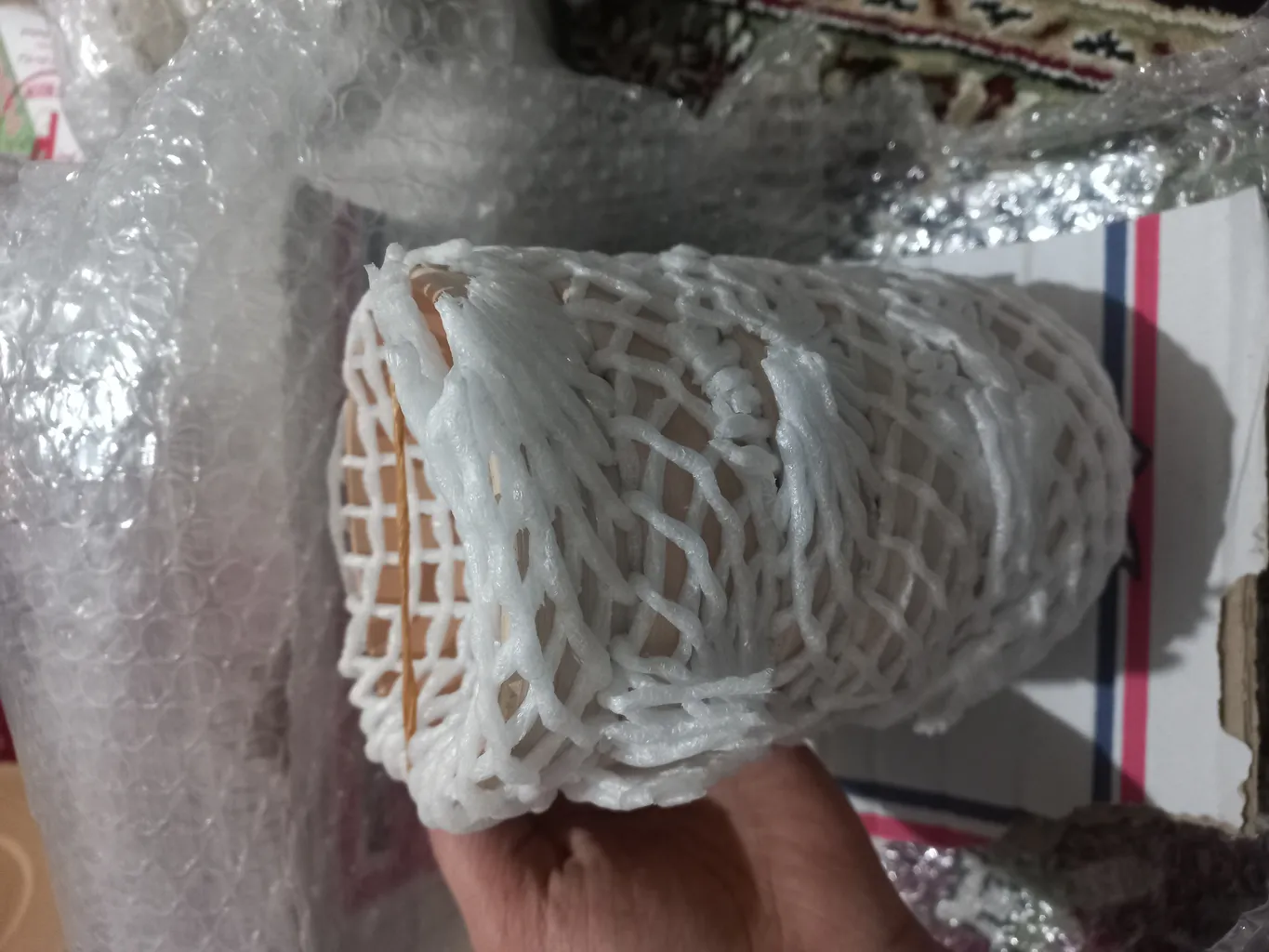 دور پلاستیک تق تقی داره بعد با یه چیز دیگه که نمی دونم چیه پیچیدن بعد با نخ پلاستیکی هم محکمشون کردن