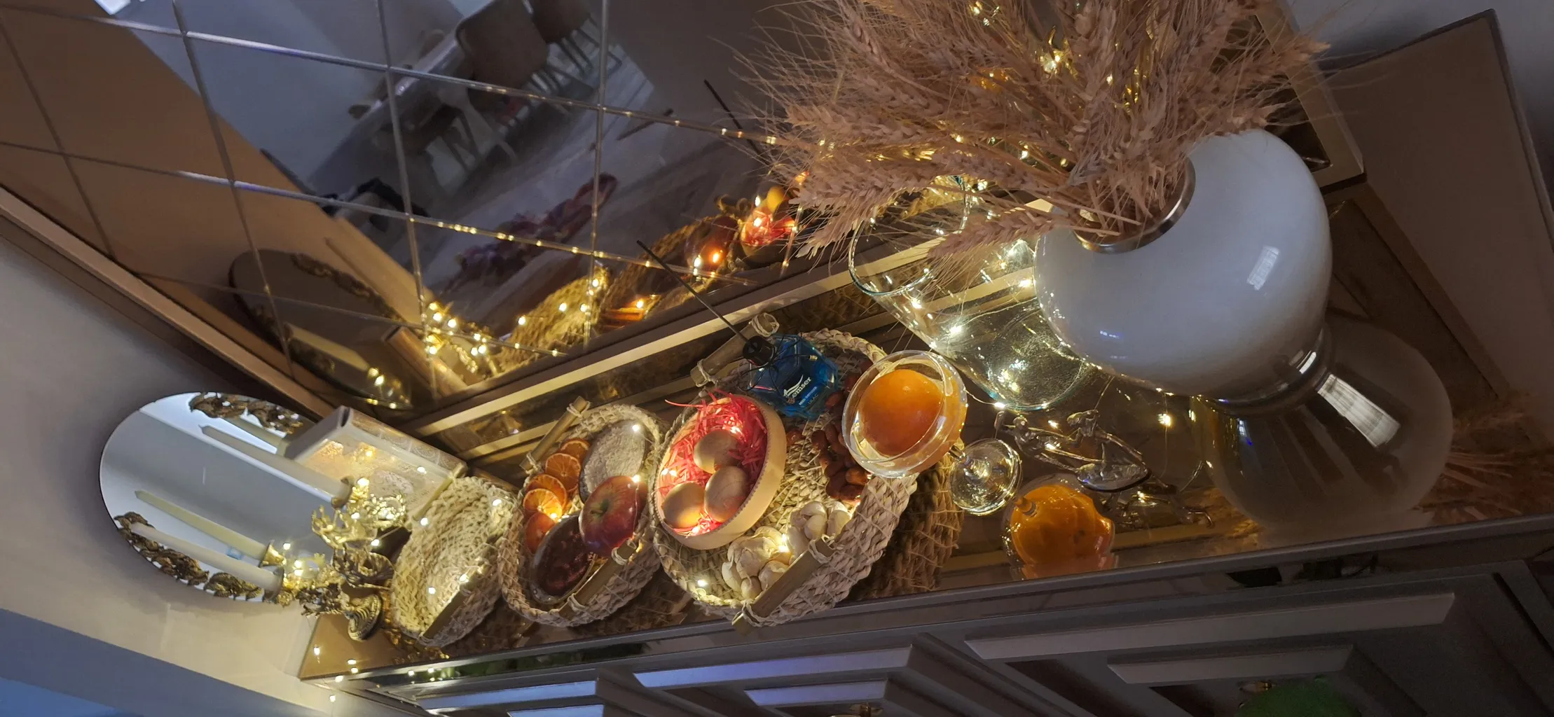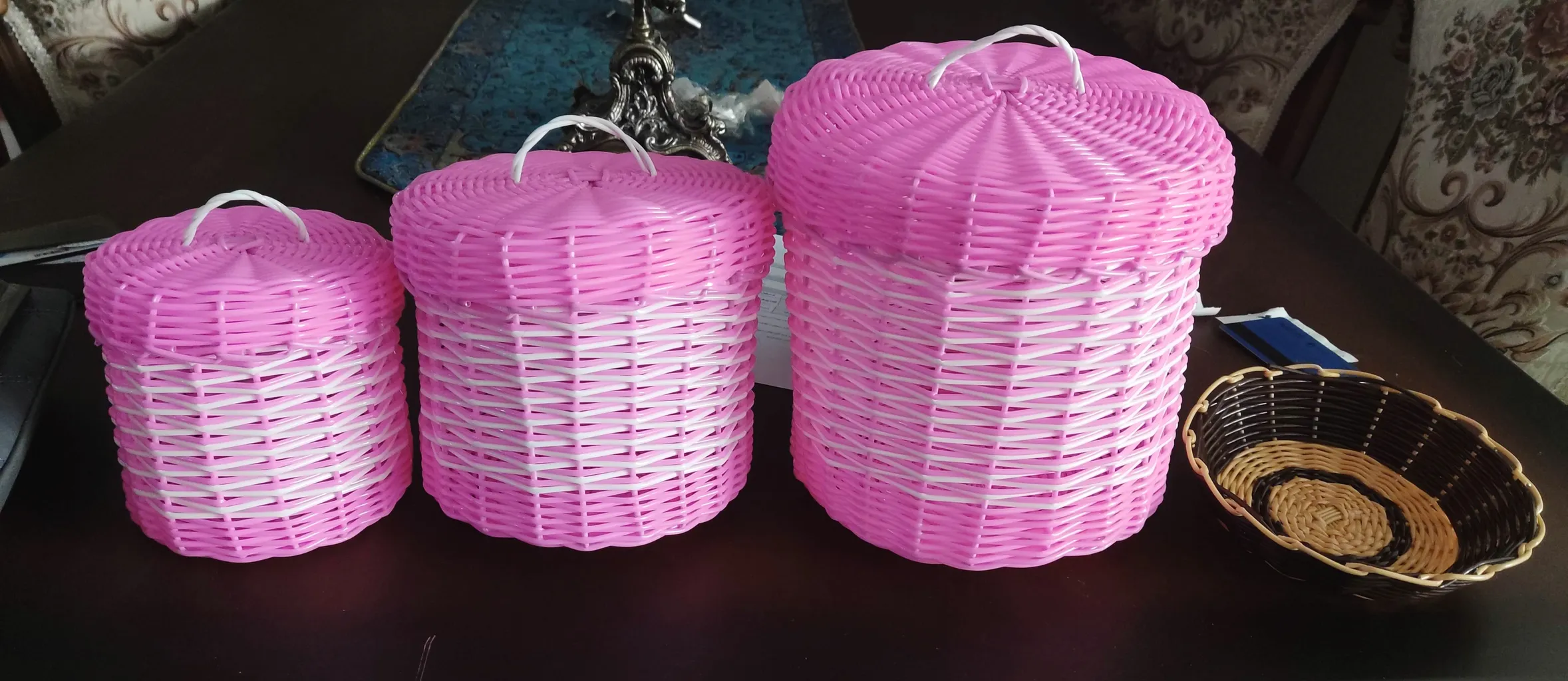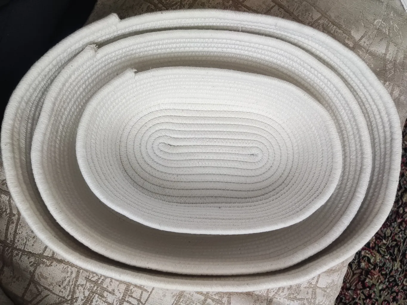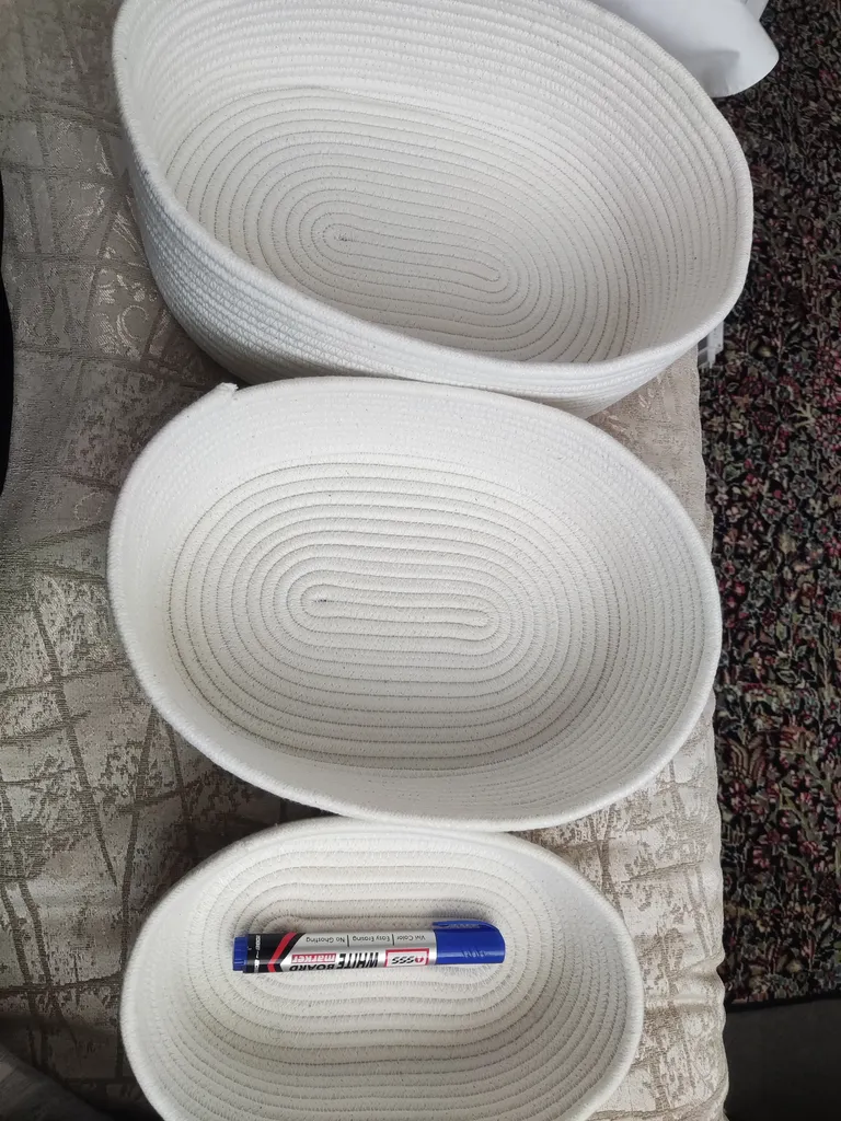 سبد حصیری ؛ سه تا هستن تو اندازه های مختلف ، دقیقا شبیه عکسشه . میتونست یکم تمییز تر کار بشه ، جنسش هم خوب بود و به نظر مقاوم میاد . من برای سفره هفت سینم گرفتم که البته هموز کامل نشده ولی عکسشو براتون میذارم
