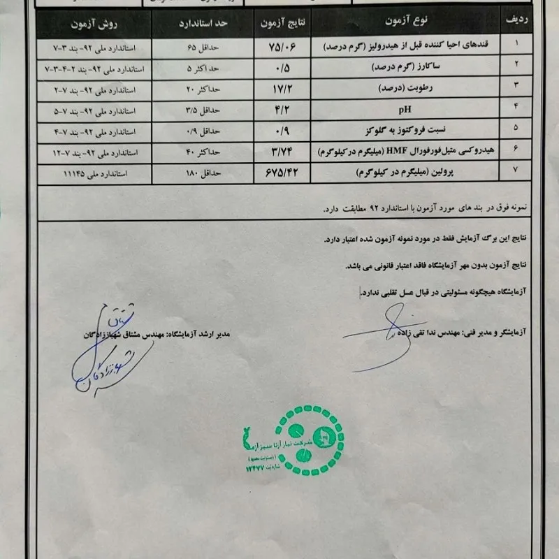 نظر و تجربه خرید عسل طبیعی نمونه مخصوص خوانسار -۲۰۰۰ گرمدر تاریخ ۱۱ آبان ۱۴۰۴
