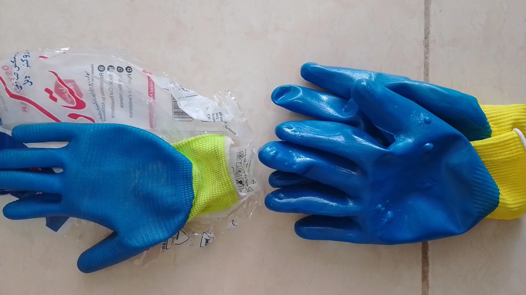 - ⬤ دستکشهای ضد آب : این دستکشها برای کار در شرایط مرطوب و بارانی طراحی شدهاند و معمولاً از جنسهای پلاستیکی یا نیتریل ساخته میشوند. خریداران از قابلیت محافظت این دستکشها در برابر آب و رطوبت ابراز رضایت کردهاند. اما برخی از کاربران به عدم تنفسپذیری و راحتی این دستکشها در حین کار اشاره کردهاند و این موضوع را به عنوان یک مشکل مطرح کردهاند.