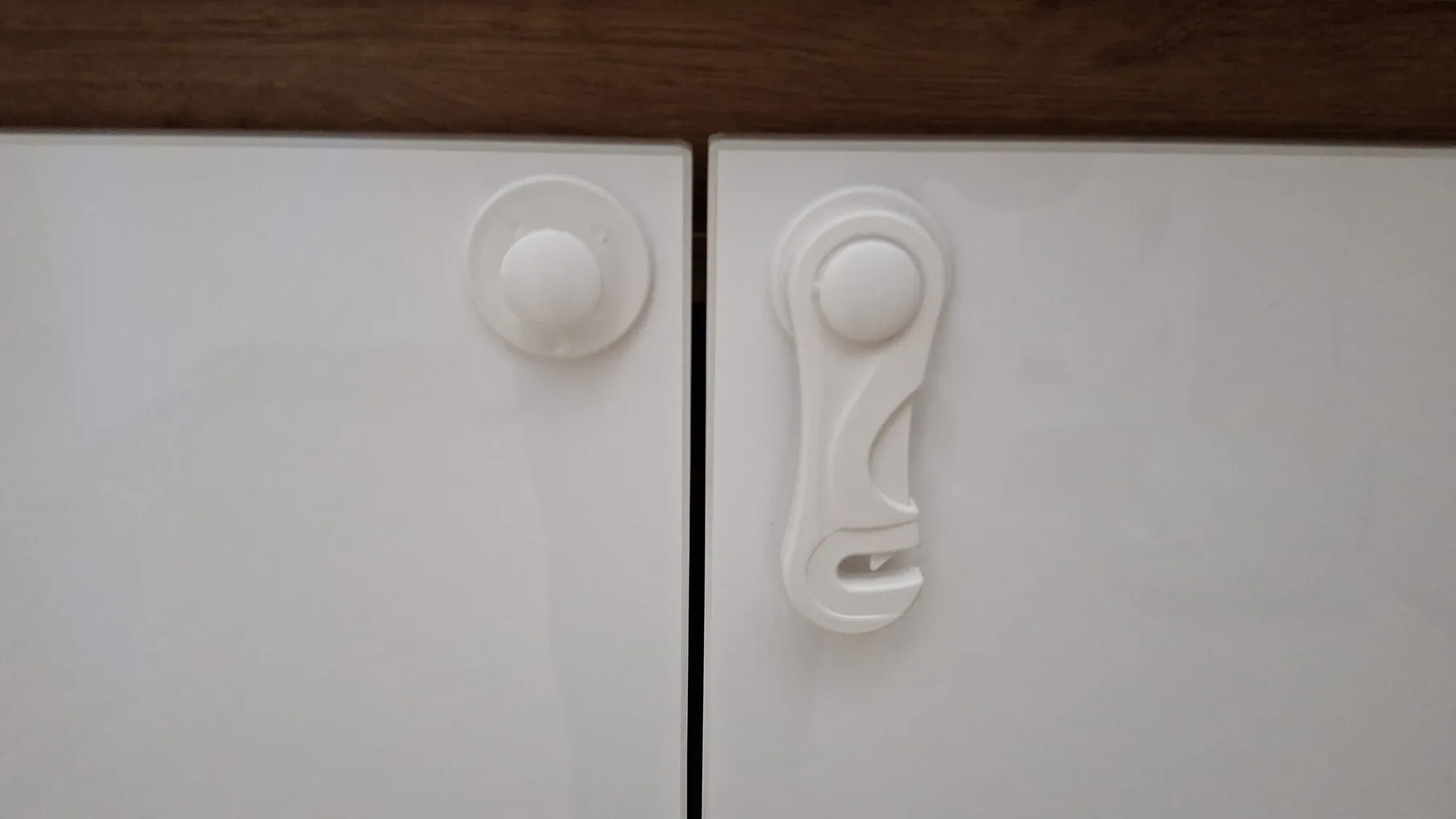من اول فکر می کردم اینا رو به کابینت می چسبونیم تا بچه ها درش رو نتونن باز کنن، ولی مثل اینکه مکانیسم عملش اینه که بچه اینو از در کابینت بر می داره و باهاش سرگرم می شه تا به محتویات داخل کابینت کاری نداشته باشه، به همین خاطر من امتیاز ۵ می دم به این طراحی و تولید هوشمندانه ی این محصول