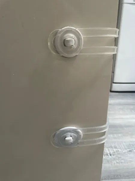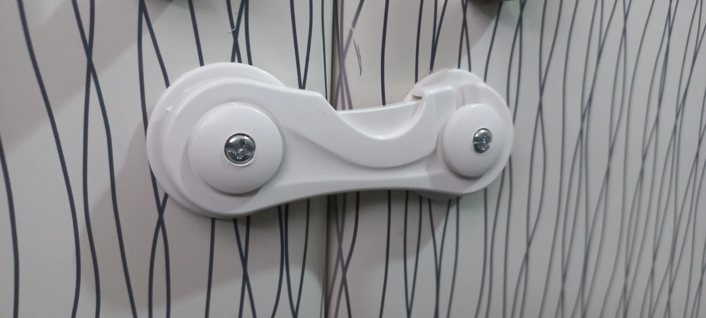 طیبه کاملی : قفل درب کابینت ؛ خیلی خوب بود من به تمام کابینت ها زدم یکی دوبار چسب یکی دوتاشون باز شدکه دوباره چسبوندمشون والان خوبه فعلا که باز نشدن و کار من و راحت کردن که دختر یک سالم دیگه نتونه کابینت ها رو باز کنه. بعد ۶ ماه دوباره سفارش دادم که این دفعه خیلی بهتر بود.چسبشون دیگه باز نشد