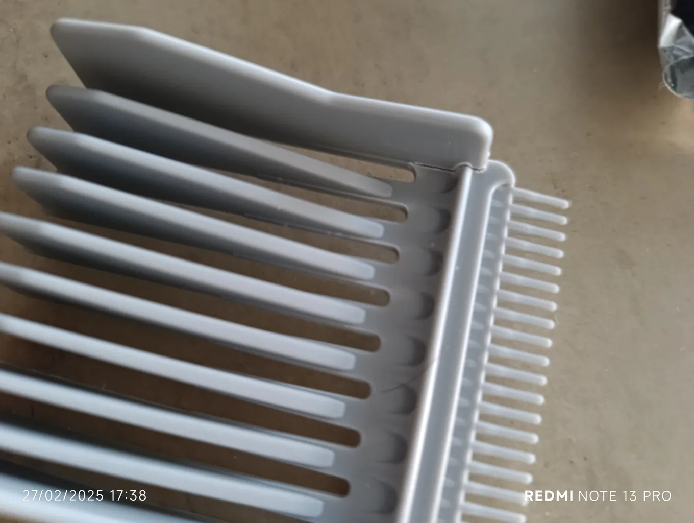 بسته بندیش تو مشمای کثیف حباب دار بود، اول اینکه پلاستیکه کوچیکه سر فنری جای سشوار نبود، بعدش ۲تا خط عمقی جای برس ها بود، بعدش پیچ رو به زور کرده بودن تو پایه تا یه سوراخ ایجاد بشه، باز گفتم اشکال نداره مرجوع نمیکنم ولی خدایی با میله ی کج نمیتونم کنار بیام🤦 ♀درسته ارزون خریدم یهو قیمتش فضایی رفت بالا ولی جنس پر از ایراده و به درد نخوره، از تمام نواقصش عکس میگیرم میذارم و مرجوع میکنم