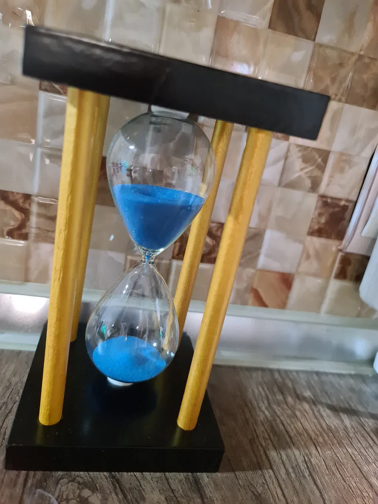 - ⬤ نوع و کیفیت شن : نوع شن استفاده شده در ساعت شنی تأثیر زیادی بر عملکرد آن دارد. شنهای ریز و نرم که به راحتی جریان دارند، معمولاً بهتر از شنهای درشت و زبر عمل میکنند و باعث میشوند زمانسنجی دقیقتری داشته باشید. برخی خریداران به چسبیدن شن به شیشه اشاره کردهاند که میتواند عملکرد ساعت را مختل کند.