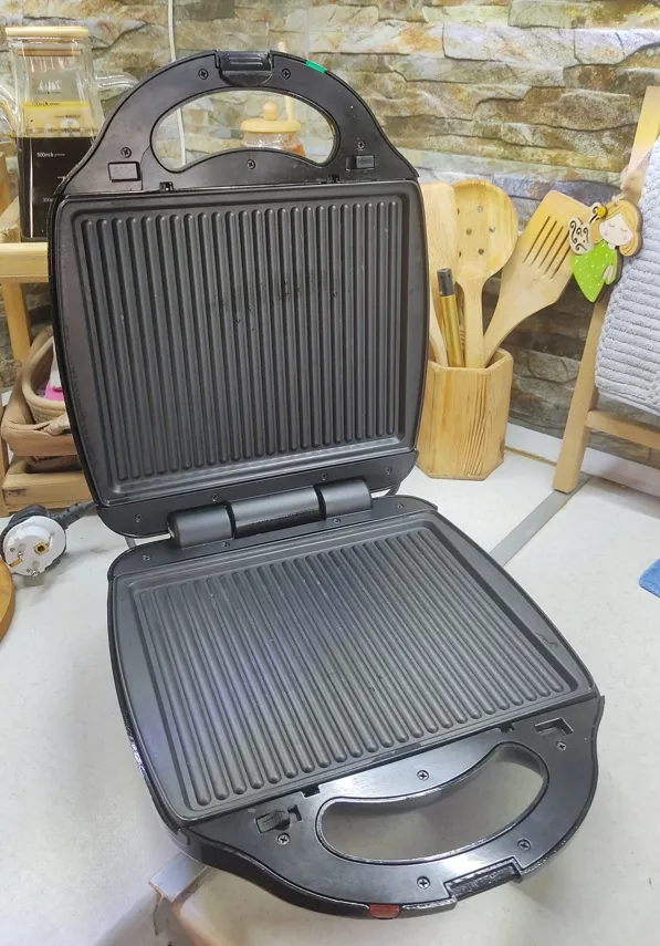 - ⬤ ساندویچ ساز با صفحات جداشونده : این مدلها دارای صفحات قابل جدا شدن هستند که تمیز کردن آنها را آسانتر میکند. خریداران از این ویژگی به عنوان یک مزیت بزرگ یاد کردهاند، زیرا میتوانند صفحات را به راحتی شستشو دهند. این دستگاهها معمولاً دارای طراحی ارگونومیک هستند که استفاده از آنها را راحتتر میکند. با این حال، برخی خریداران به کیفیت پایین صفحات و احتمال شکستن آنها در طول زمان اشاره کردهاند. همچنین، برخی از کاربران به عدم یکنواختی حرارت در برخی مدلها و احتمال سوختن نانها اشاره کردهاند.