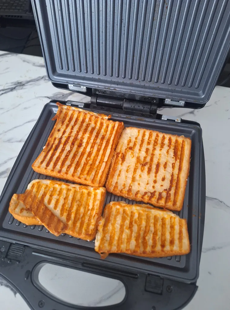 - ⬤ ساندویچ ساز چهار خانه : این مدلها معمولاً دارای چهار خانه برای تهیه ساندویچ هستند و به همین دلیل برای خانوادههای بزرگتر یا مهمانیها مناسبترند. خریداران از سرعت پخت و کیفیت نانهای تهیه شده راضی بودهاند. این دستگاهها معمولاً دارای قدرت حرارتی بالایی هستند که باعث میشود غذاها سریعتر آماده شوند. همچنین، برخی از این دستگاهها دارای چراغ نشانگر هستند که نشان میدهد دستگاه آماده به کار است. اما برخی خریداران به وزن بالای دستگاه و فضای اشغالی بیشتر آن اشاره کردهاند. همچنین، برخی از کاربران به عدم یکنواختی حرارت در برخی مدلها و احتمال سوختن نانها اشاره کردهاند.