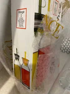ظرف روغن ؛ طرحش زیباست و جنس خوبی داره، اصلا نشتی نداره و موقع ریختن روغن خوب میشه کنترل کرد، فقط کمی زیادی بلنده که البته من از خریدم راضی هستم