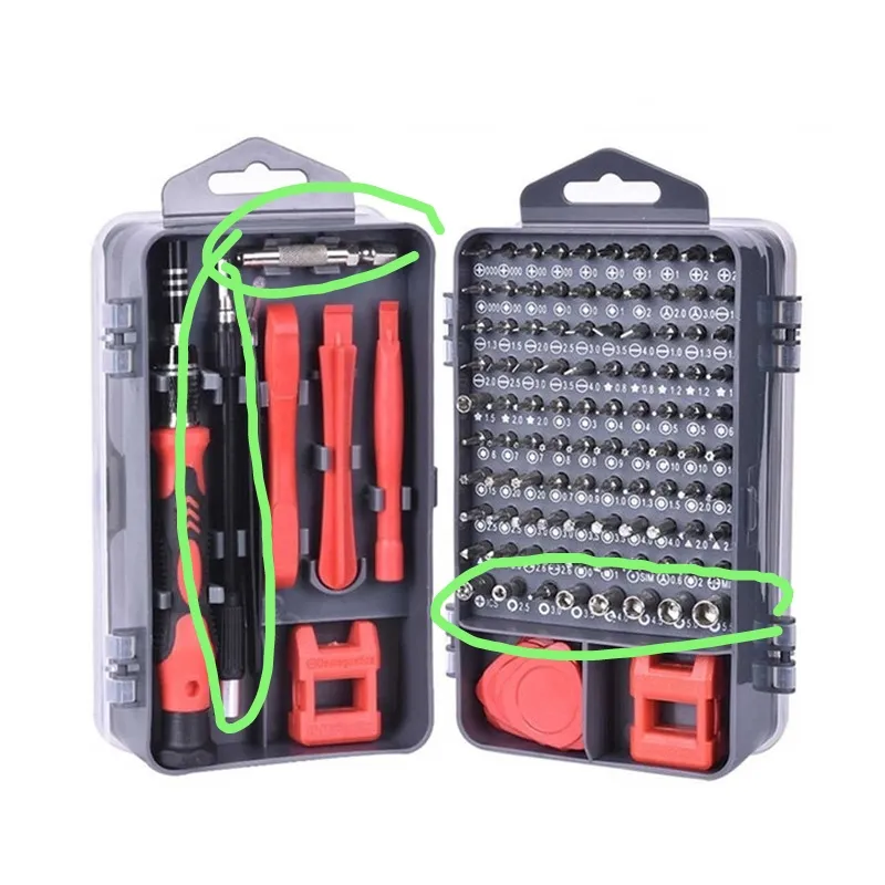 - ⬤ سریهای قابل تعویض پیچ گوشتی : این سریها به کاربران این امکان را میدهند که با یک ابزار، انواع مختلف پیچها را باز و بسته کنند. خریداران از تنوع و کارایی این سریها ابراز رضایت کردهاند و به راحتی در تعویض آنها اشاره کردهاند. با این حال، برخی از آنها به کیفیت پایین برخی از سریها و احتمال شکستن آنها در استفادههای سنگین اشاره کردهاند. همچنین، برخی از کاربران به عدم وجود سریهای خاص برای پیچهای خاص ابراز نارضایتی کردهاند.