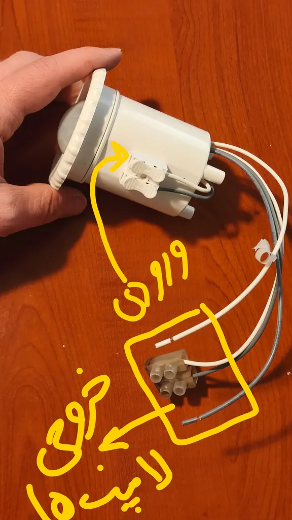 ی ترمینال سبز کوچیک داره که باید ورودی های برق رو بهش وصل کنید (بهتره که فاز بالا و نول رو پایین) باشه