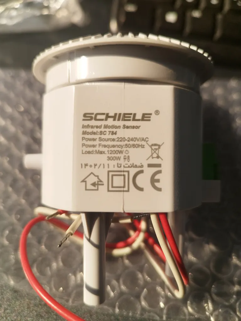 4 رشته سیم هم از سنسور بیرون اومده که برای من 2 رشته سفید و 2 رشته زرد بود (برای نصب 2 وسیله برقی جداگانه طراحی شده)