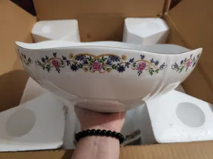 - ⬤ کاسههای سرو : کاسههای سرو برای ارائه انواع خوراکیها و دسرها استفاده میشوند. خریداران به طراحی و کیفیت این کاسهها توجه دارند و معمولاً از جنس چینی یا شیشهای هستند. بسیاری از خریداران از زیبایی و شفافیت کاسههای شیشهای تعریف کردهاند، در حالی که کاسههای چینی به خاطر طراحیهای زیبا و کلاسیک مورد توجه قرار گرفتهاند. با این حال، برخی از خریداران از عدم تعادل و لغزش کاسهها در سطح میز شکایت دارند.