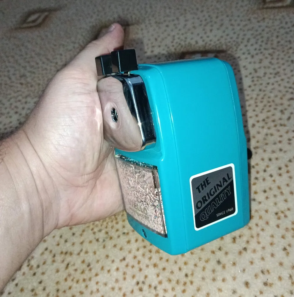 قبلا از یک فروشنده دیگه مارک متفاوتی خرید کرده بودم ولی کیفیت این مشکی خیلی بهتر بود حتی گیره نگهدارنده اش هم کاملا فلزی و محکمتره و خوب هم تیز میکنه، توی شگفت انگیز زیر ۳۰۰ت بود گرفتم که بنظرم نسبت به اون یکی خیلی ارزش خرید بالاتری داره